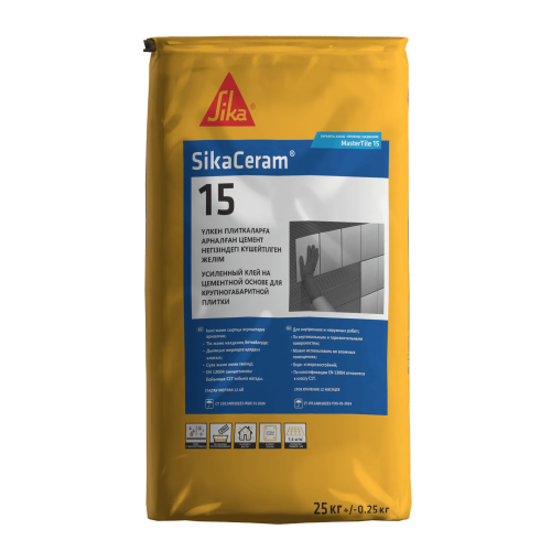 SikaCeram 15 (MasterTile 15) - универсальный клей, обладающий высокими фиксирующими свойствами. Используется для приклеивания керамических плиток больших размеров, мрамора и гранита. Легок в приготовлении и нанесении.